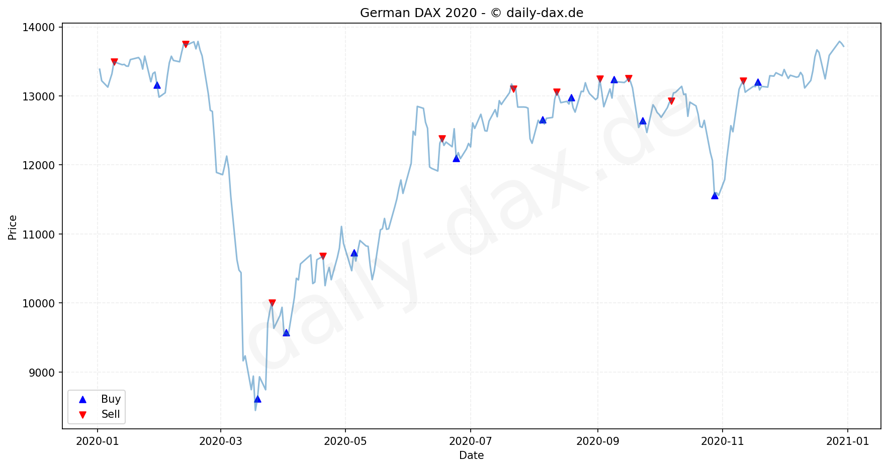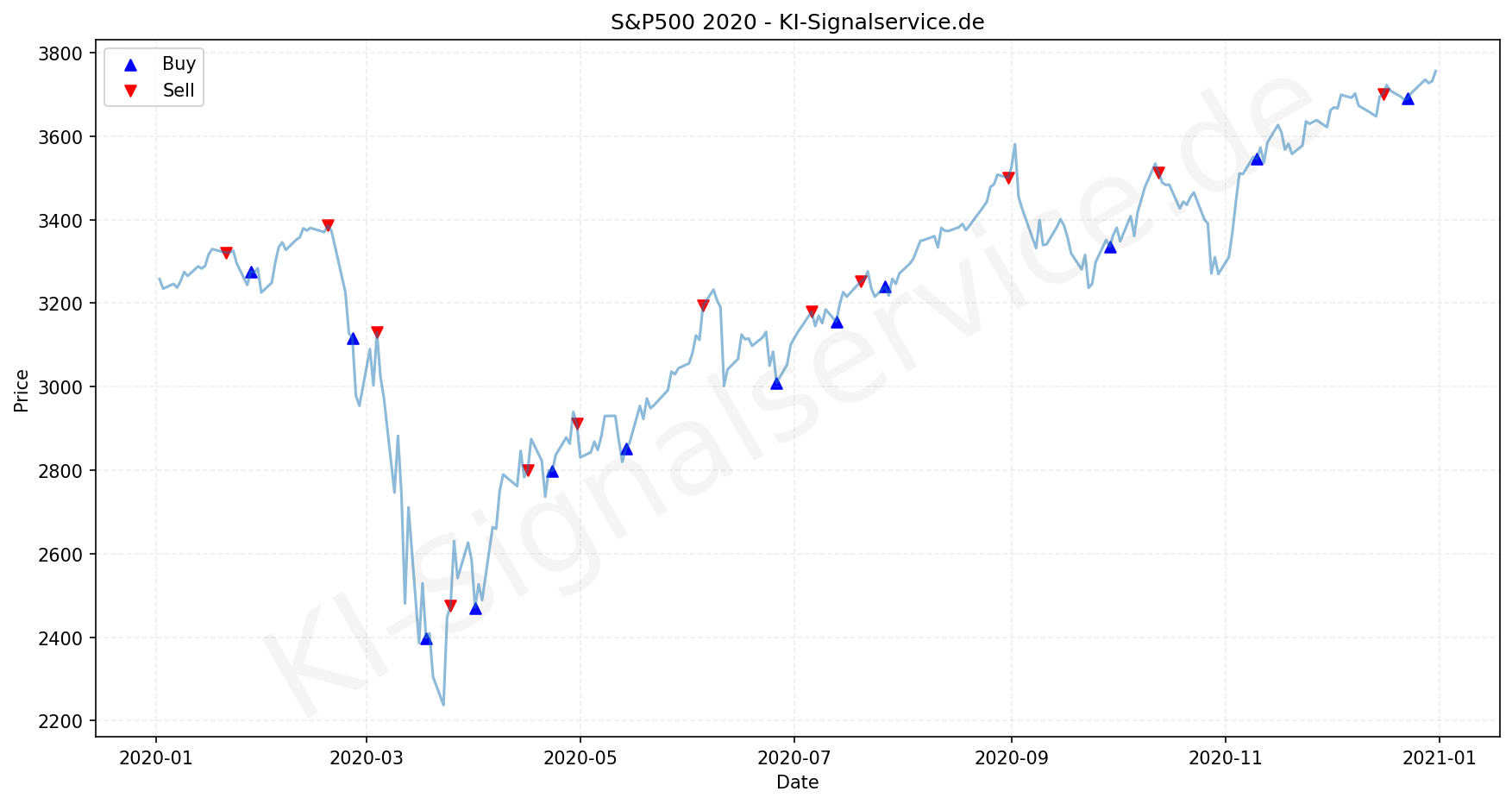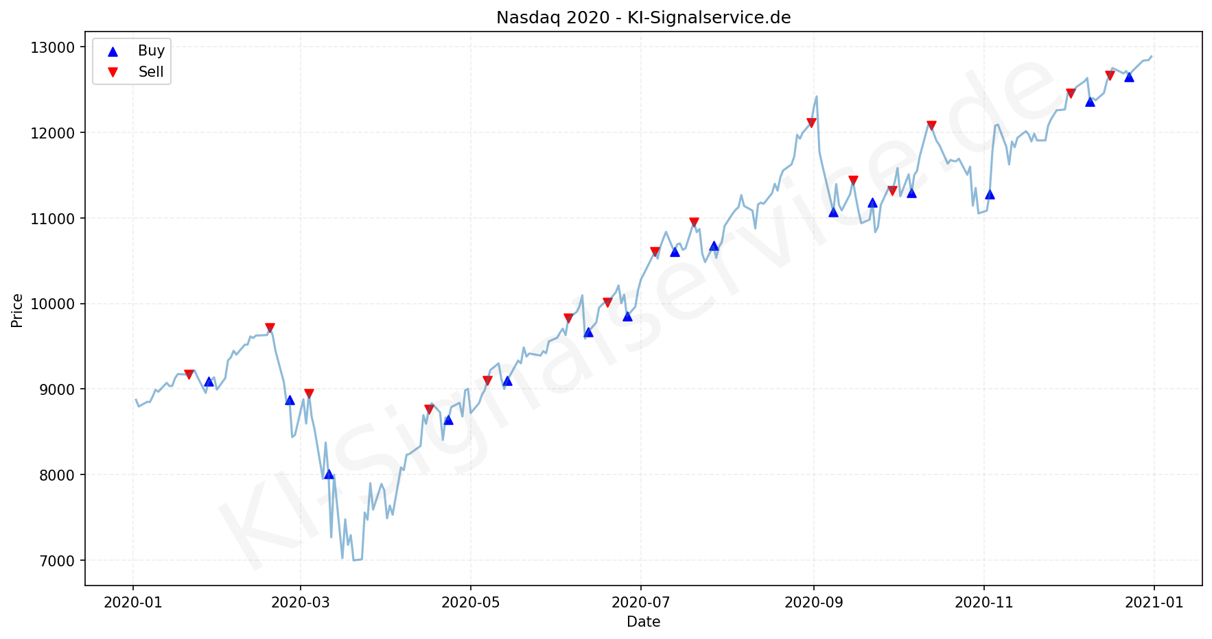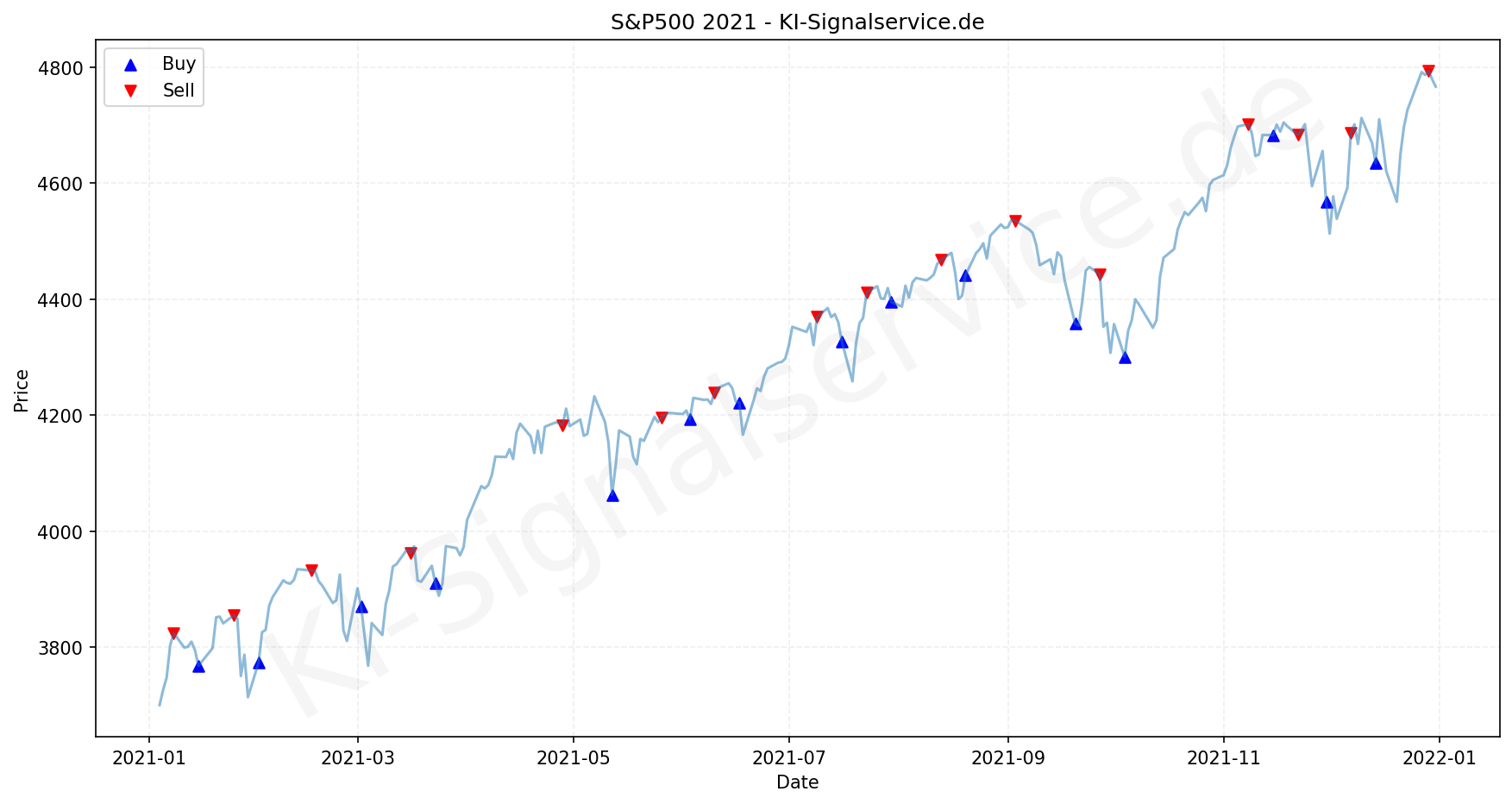 Unsere KI (Künstliche Intelligenz) scannt jeden Tag die Markt-Performance. Der Scan beginnt ca. im Jahr 2000 z.B. beim SP500 und endet zum heutigen Tagesschlusskurs. Über diese Chartanalyse laufen außerdem noch 5 Indikatoren um den bestmöglichen Ein -und Ausstieg zu errechnen und die besten Chartwendepunkte zu ermitteln. Wir analysieren die Chart-Bewegungen und benachrichtigen Sie täglich per E-Mail und Telegram Message. In dieser Benachrichtigung sind die Chartbilder mit den letzten 90 Tagen zu sehen. Die Ein- und Ausstiege sind mit blauen und roten Dreiecken gekennzeichnet. Sie brauchen bei einem neuen Signal, nur noch ihre Trades umsetzen.
